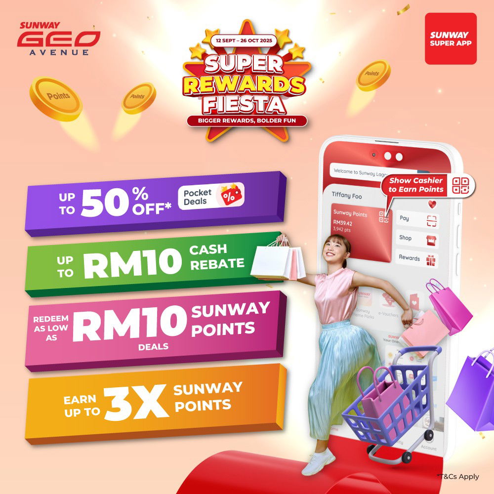 Promotions shown are valid at participating outlets in Sunway Geo Avenue from 12 September – 26 October 2025.